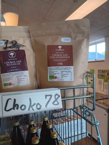 … at det her i august er et år siden Købmanden i Alken introducerede de første poser med produkter fra Colombani. Mogens Andersen er indkøber på produktet og fortæller, at det er taget godt imod og indtil nu har solgt for 70.000 kr. incl. moms af granola, mango og hvad der ellers findes. Sidste nye skud på sortimentstammen er chokoladeovertrukne pekannødder.