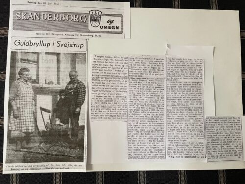 I Demokratens forsidehenvisning omtales han endda som Danmarks sidste hosekræmmer, noget der dog ikke fremgår af teksten, hvor det med nutidens briller springer i øjnene, at guldbryllupsomtalen ikke handler så meget igen om Mathilde, udover når Laurits roser hende. Hun havde travlt indendøre med at sy gardiner, mens Laus var blevet sat til at fikse husets ydre op med malerkosten.