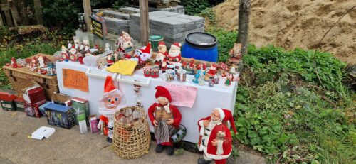 Med sine presenninger som nødtørftigt tag på bindingsværksmurene var huset bolig gennem årtier til Vivi og Amdi og stod ubeboet de seneste år. Nedrivningen af den medtagede bygning betyder nu, at der bliver plads til nybyggeri. Ingvar Kristiansen forevigede ruinen lige før og efter nedrivningen og fik dertil et skud af de mange nisser, huset gemte på, og som så myldrede frem.