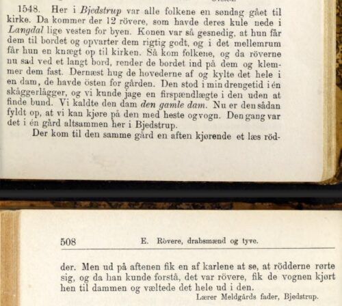Peder Porse fra Boesvej tilføjer, at sagnet om røverfamilien fra Langdal i høj grad ligner noget af det sidste i St. St. Blichers fortælling “De Tre Helligaftener” fra 1841.